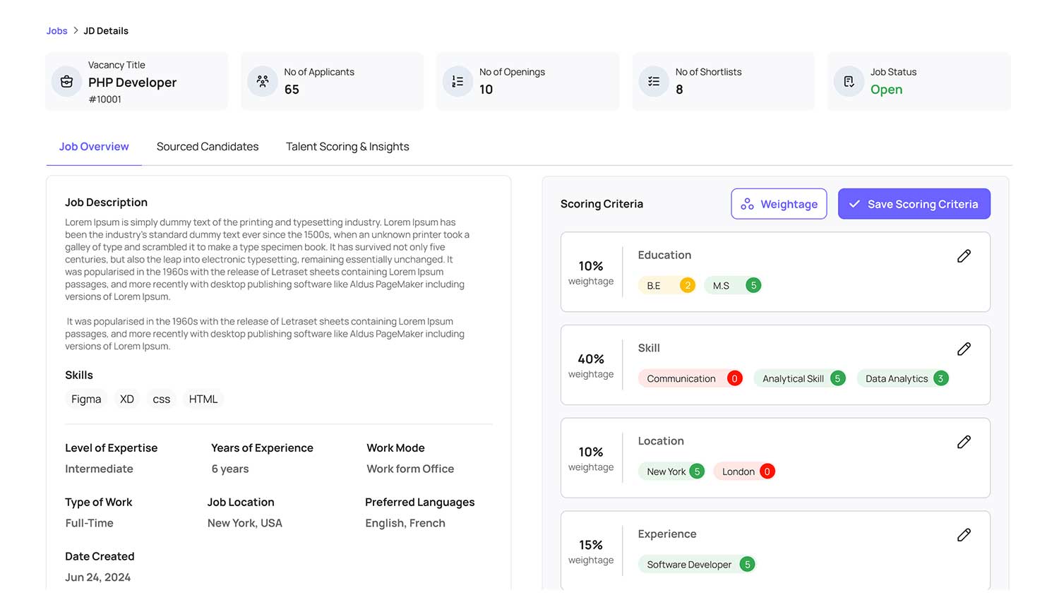We developed powerful algorithms to source candidates and calculate scores for relevant skills.